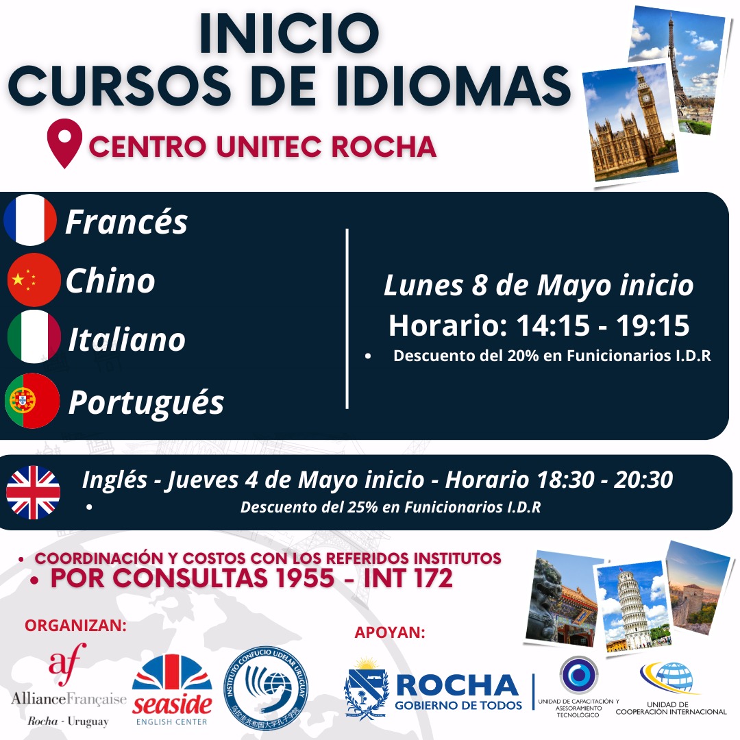 El conocimiento es la base del desarrollo. Con ésta premisa daremos apoyo desde el Gobierno de Rocha, por medio del Centro UNITEC, a cursos de idiomas (inglés, francés, portugués, chino e italiano).