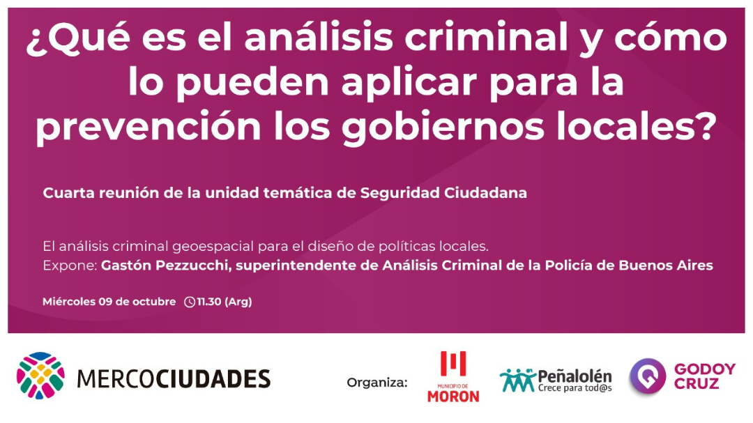 La Unidad Temática de Seguridad Ciudadana de Mercociudades convoca a las ciudades miembro de la Red a su próxima reunión virtual el miércoles 9 de octubre a partir de las 11:30 horas (GMT-3), con el fin de abordar el análisis criminal geoespacial para el diseño de políticas públicas. Acceda al formulario de inscripción en línea.