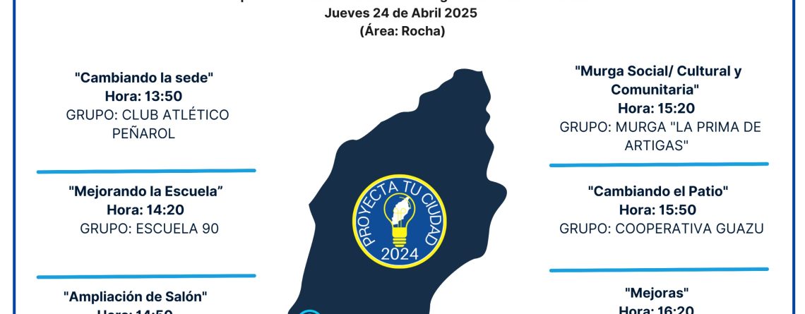 El pasado miércoles 11 de junio de 2025, el Gobierno Departamental de Rocha celebró la inauguración de varios proyectos comunitarios en el marco del programa "Proyecta tu Ciudad 2024", una iniciativa que fortalece el desarrollo local mediante la participación ciudadana. Las actividades se llevaron a cabo en las localidades de Barra de Chuy, La Coronilla, Castillos y Aguas Dulces, con...